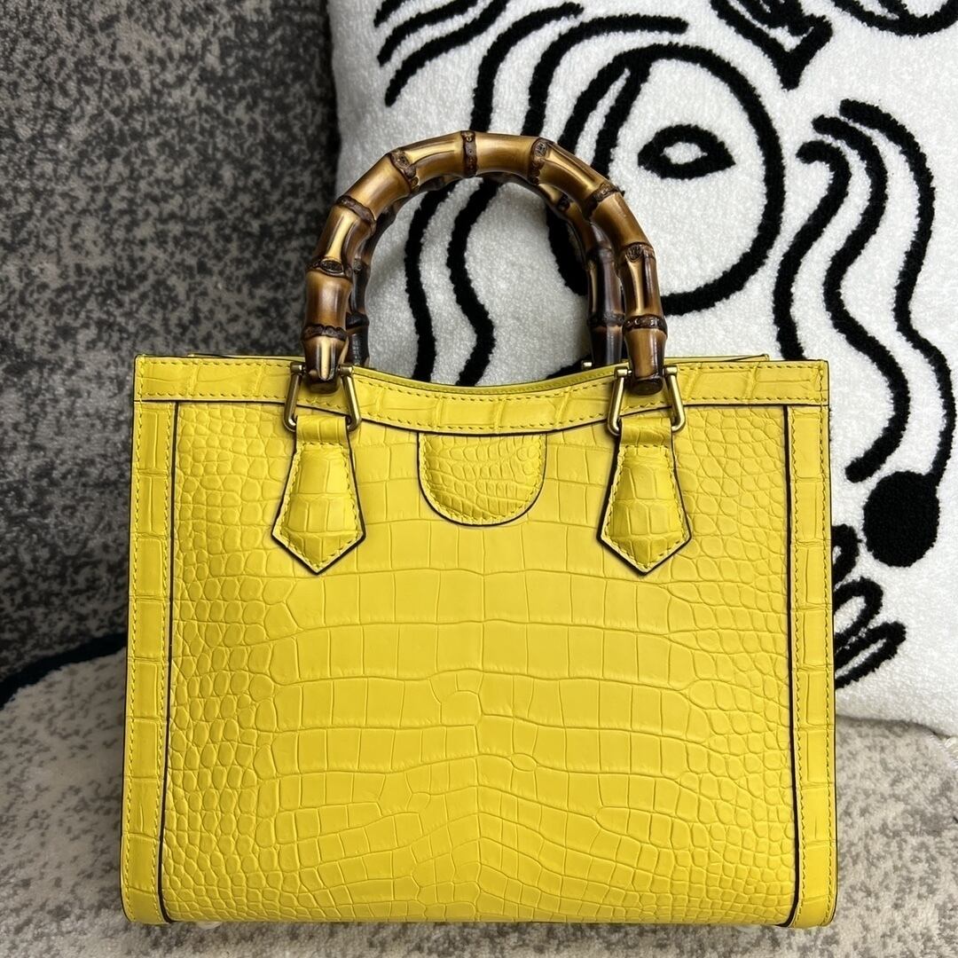 可愛い 高級クロコダイルレザー マット仕上げ レディースバッグ ワニ革 手持ち ショルダーバッグ 黄色