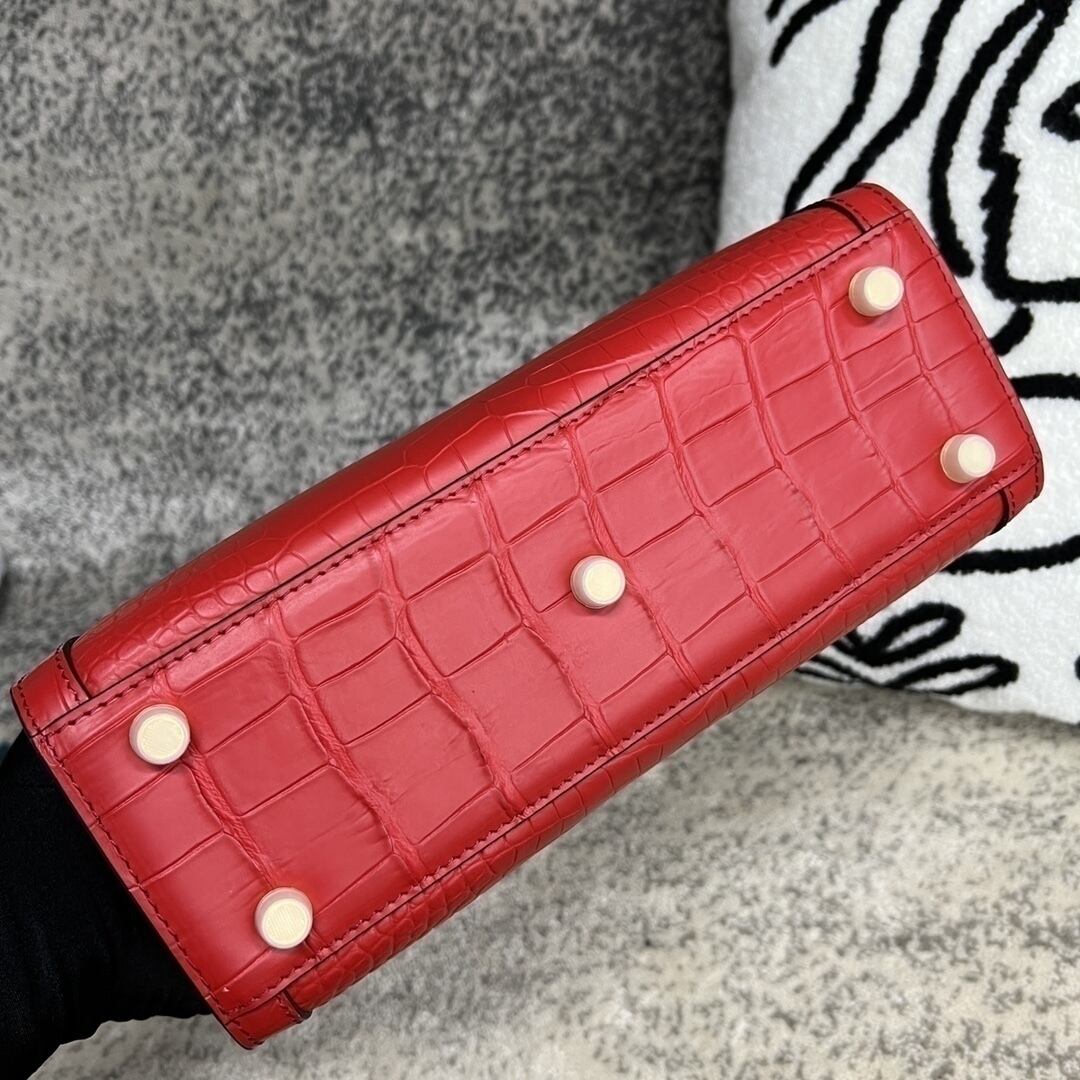 高級 ミニーバッグ 美女バッグ 高級クロコダイルレザー マット仕上げ レディースバッグ 手持ち ショルダーバッグ レッド