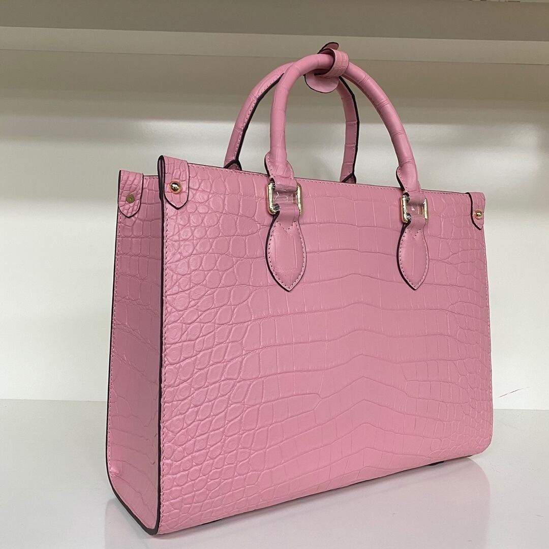 夏限定色 クロコダイルレザー ワニ革~腹革センター取り マット加工 A4/PC対応 ビジネス/ハンドバッグ トートバッグ 多色選択可 ピンク