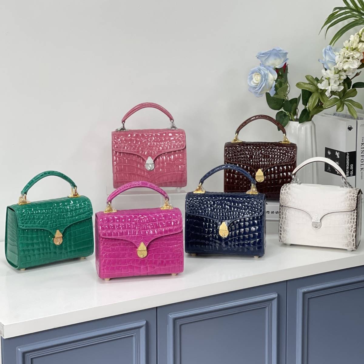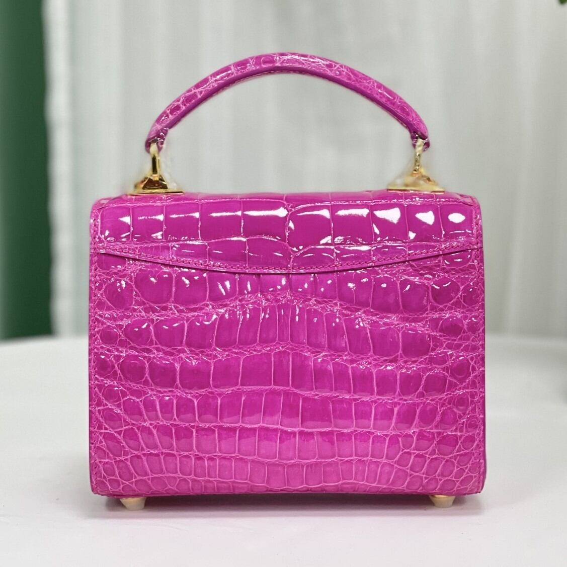 ナイルクロコダイル シャイニングボンベ加工 ハンドバッグ ワニ革 センター取り 腹ワニ ショルダーバッグ ピンク 多色あり 実物写真