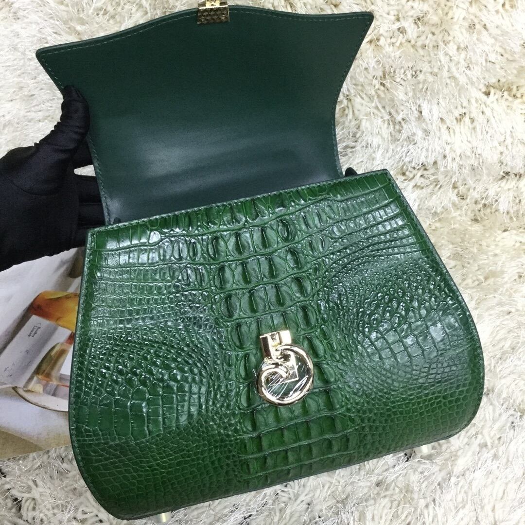 クロコダイルレザー ワニ革本物 鰐革 骨革使用 ハンドバッグ 2wayバッグ 手提げ ショルダーバッグ グリーン