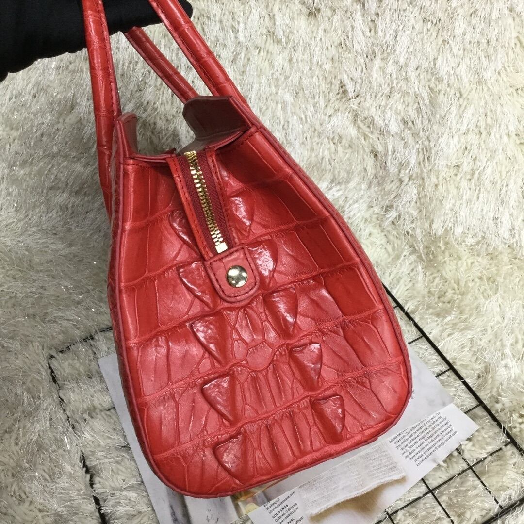 ☆クロコダイルレザー☆ ハンドバッグ ワニ革本物保証 レディースバッグ 本革 プレゼント レッド