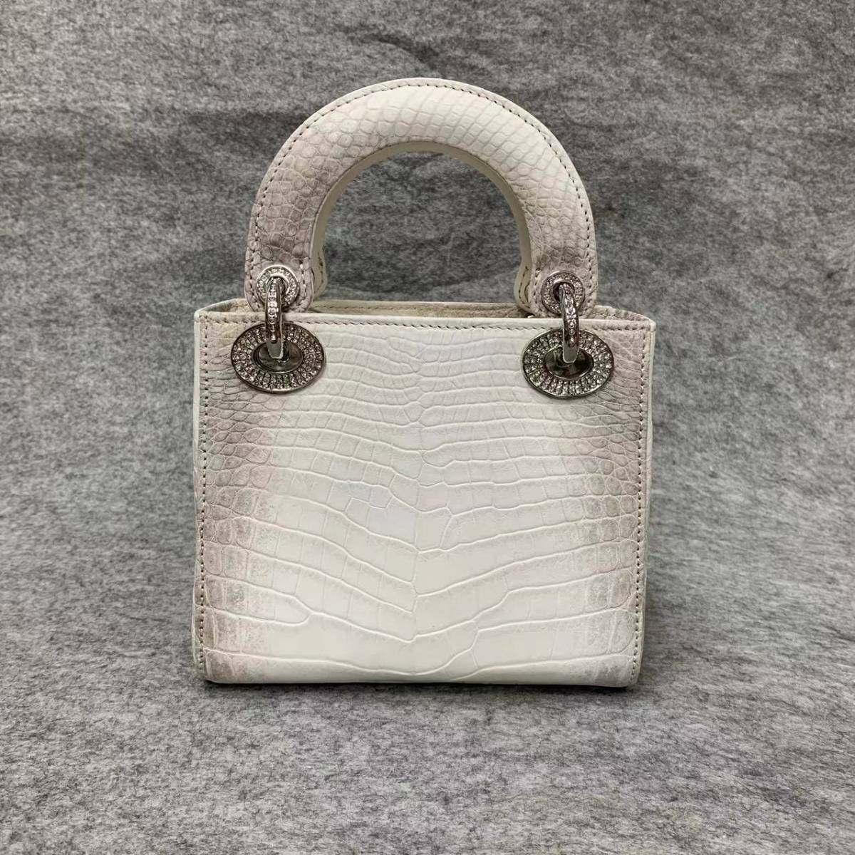 クロコダイルレザー ヒマラヤホワイト ワニ革~腹革センター取り マット加工 ハンドバッグ ショルダーバッグ 綺麗な色 1点