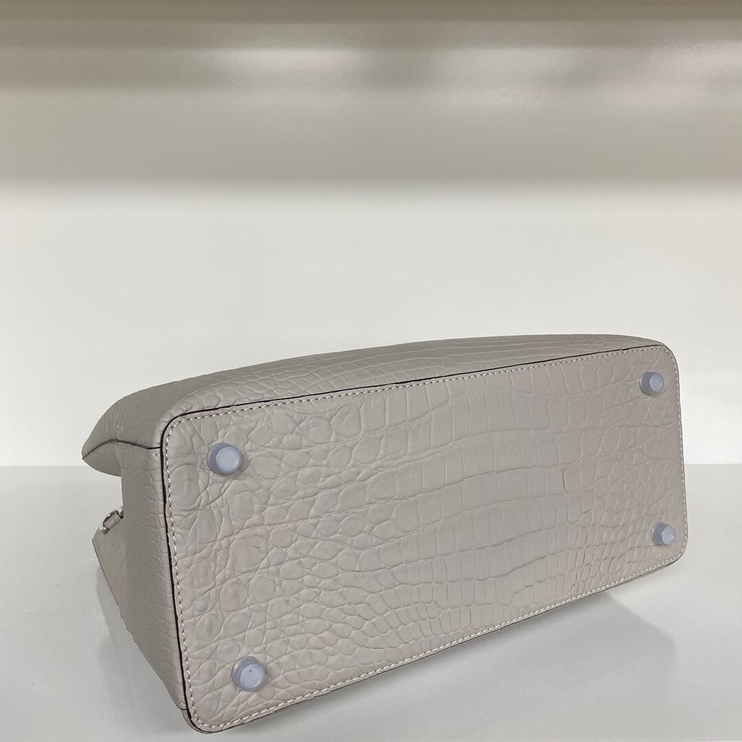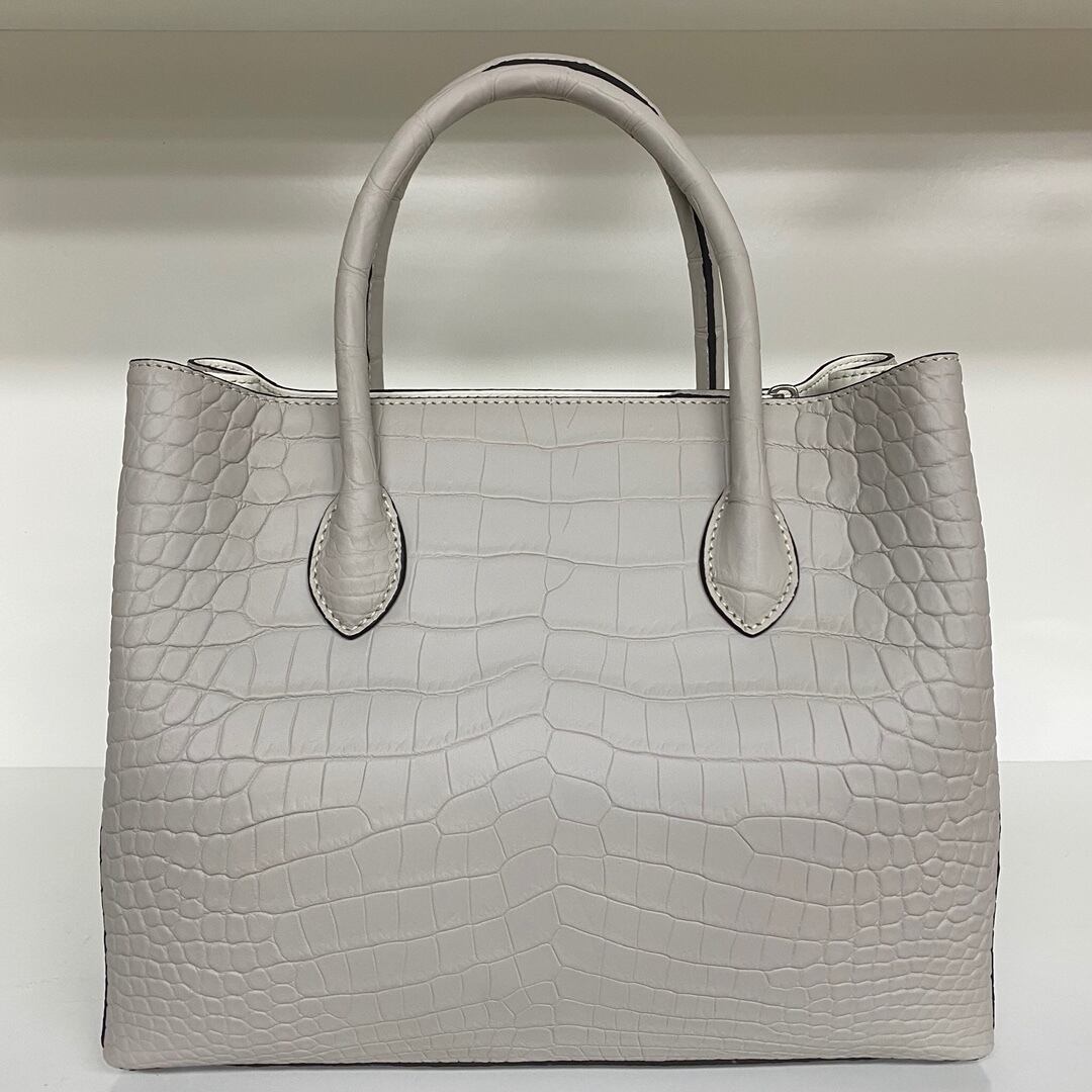 超キレイ★素敵! シャムクロコダイルレザー レディースバッグ ワニ革 バッグ 2way斜め掛けショルダーバッグ ハンドバッグ 浅いグレー