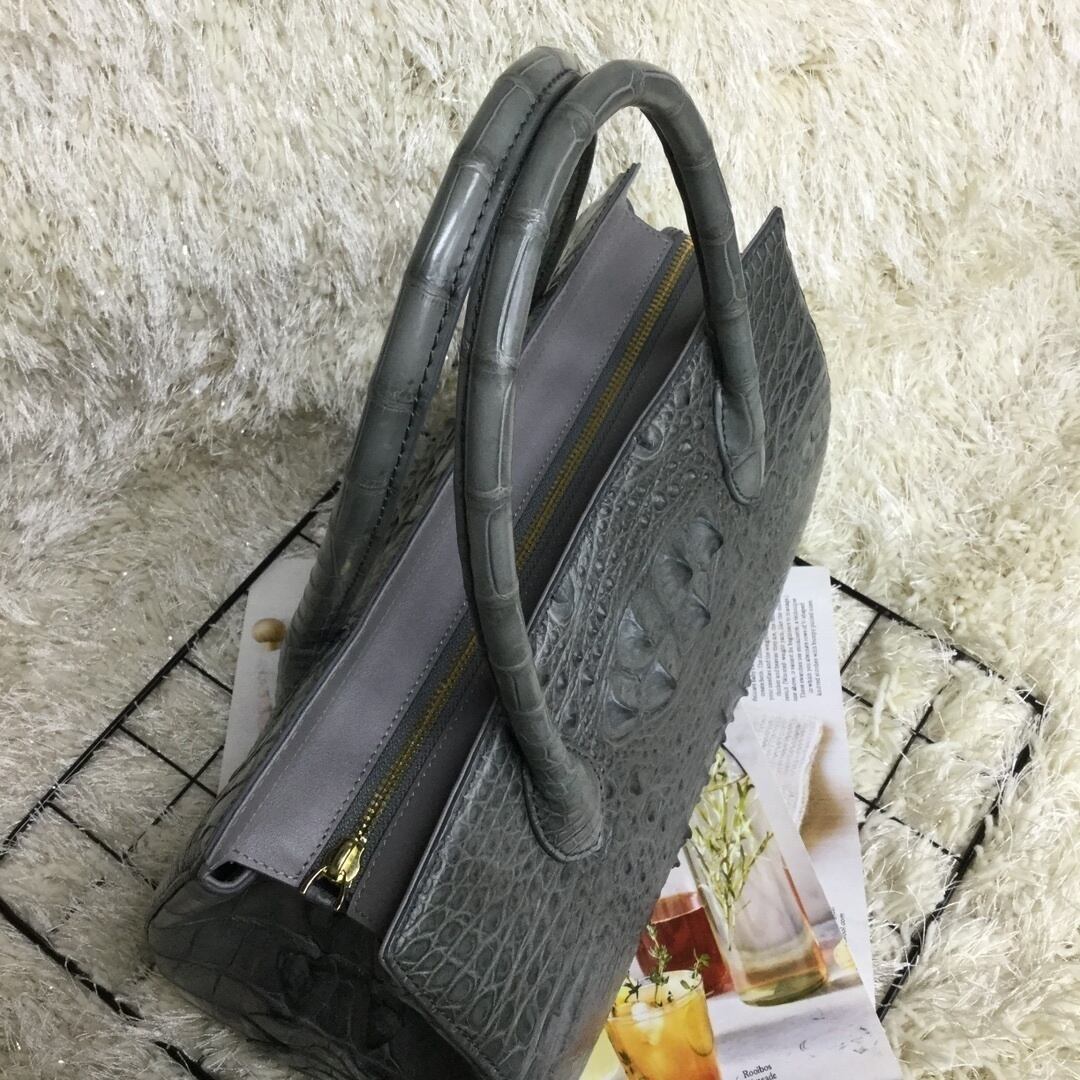 ☆クロコダイルレザー☆ ハンドバッグ ワニ革本物保証 レディースバッグ 本革 プレゼント グレー 大容量