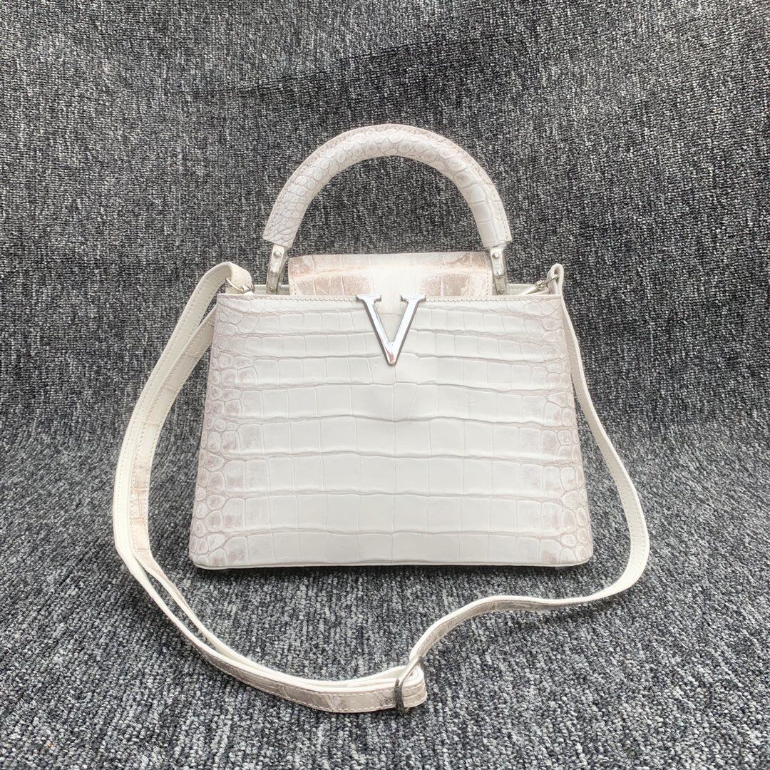 高級 ヒマラヤホワイト クロコダイル ワニ革本物保証 2WAYハンドバッグ ショルダー レディースバッグ 斜め掛け ホワイト系