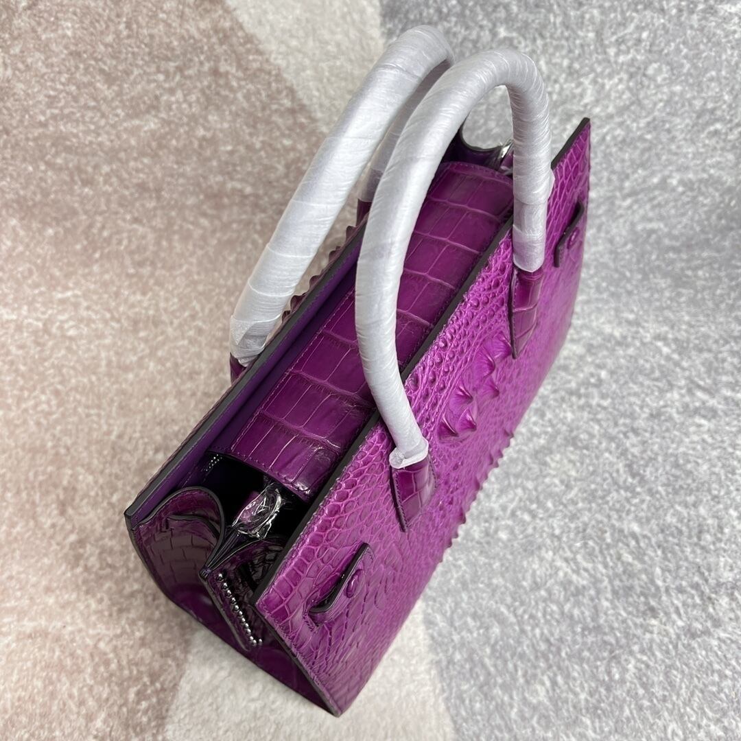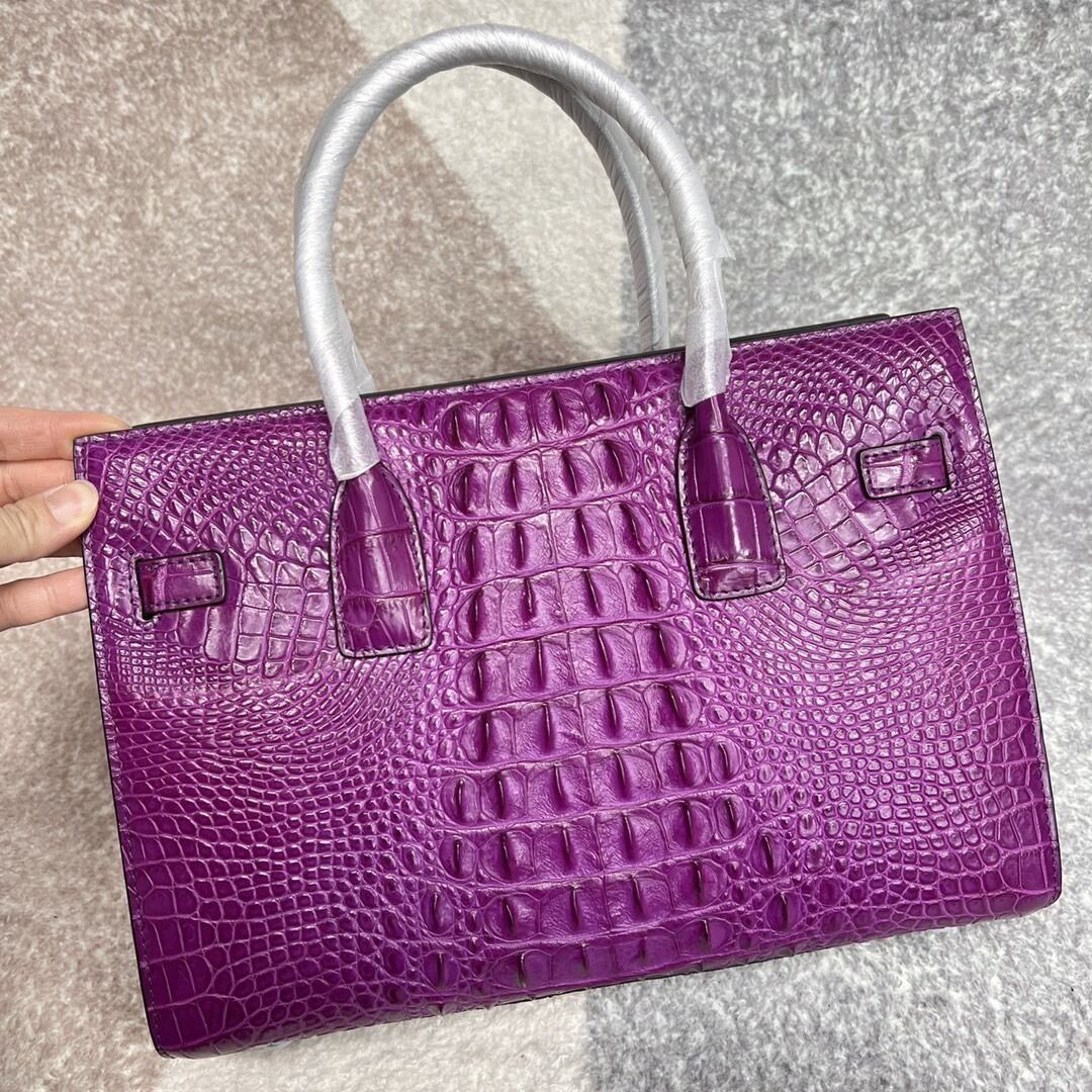 クロコダイル ワニ革本物 ハンドバッグ ショルダーバッグ 2way 本革 レディースバッグ 肩掛け 手提げ 鞄 綺麗色 ムラサキ