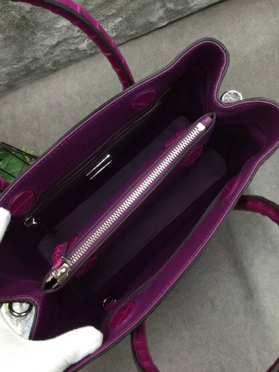 女王バッグ 高品質 クロコダイルレザー ワニ革保証 本革 レディース ショルダーバッグ ハンドバッグ パープル 大容量