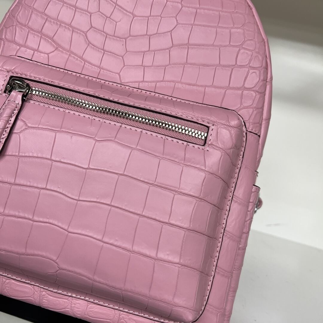 上質 クロコダイル 天然ワニ革 腹革センター取り バッグ リュックサック デイパック 男女兼用 綺麗革 旅行 ピンク 可愛い
