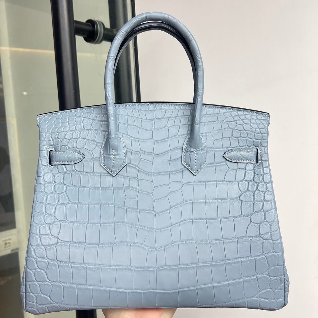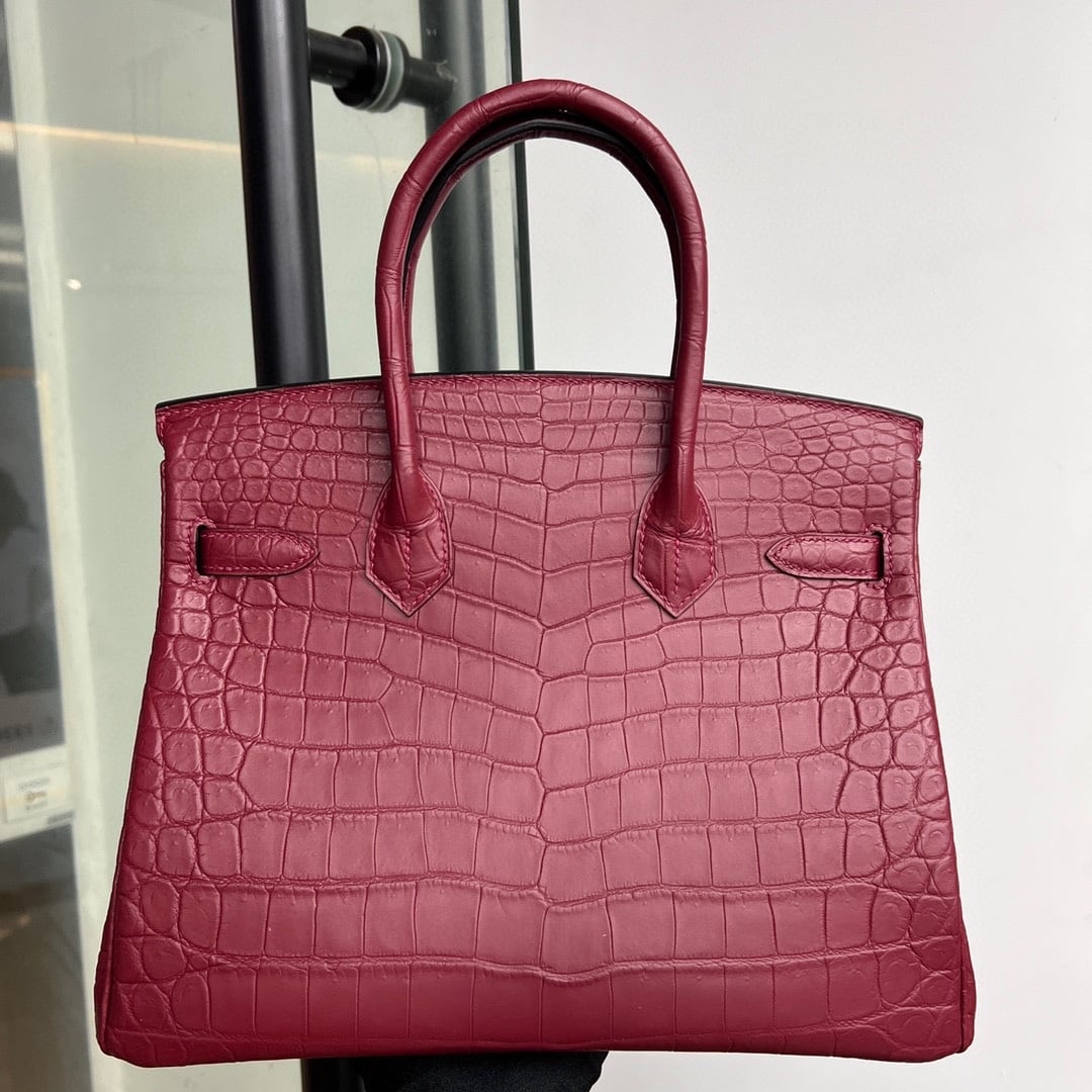 クロコダイルレザー 自立型 本物 マット加工 鰐革 レディースバッグ ハンドバッグ 金具銀色 多色あり30サイズ ワイン/オレンジ/ライトブルー/ライトピンク